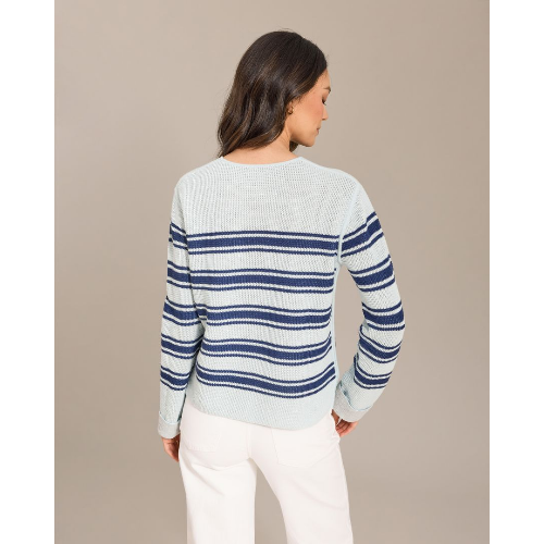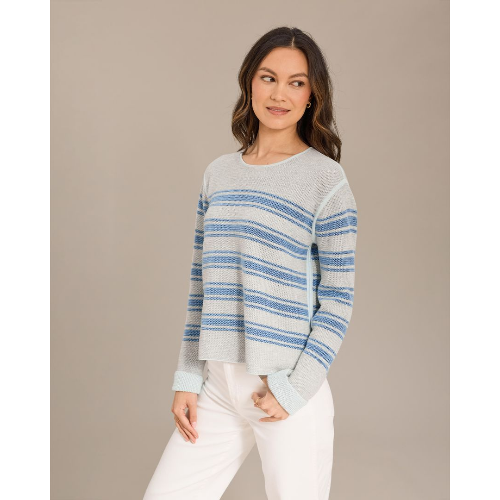 Alashan Cashmere LC2593-9620 is a versatile reversible striped crewneck sweater designed to give you two looks in one. Knit with a soft, lightweight hand and subtle texture, it features a classic crew neckline and long sleeves with ribbed trim at the neckline, cuffs, and hem. Flip it to switch up the stripe placement and refresh your outfit instantly—perfect with denim, white pants, or polished separates.