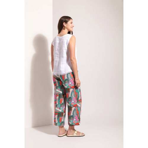 Fresh, clean, and effortlessly chic, the FOIL FO8316 Tank with Fringes is a warm-weather essential with a playful finish. Crafted in breathable linen, this sleeveless tank features a simple, easy silhouette and a classic neckline for versatile styling. A subtle fringe trim at the hem adds texture and movement, giving this timeless staple a modern edge. Perfect with printed pants, denim, or linen shorts, it’s an easy piece you’ll reach for all season long.