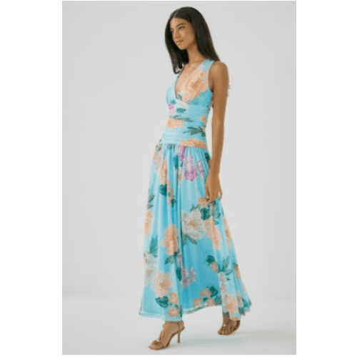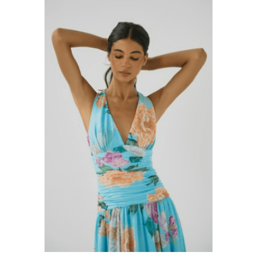 Graceful and flattering, the Jadey Dress by Hutch is a timeless maxi designed to highlight the silhouette with soft structure and flow. This sleeveless style features a plunging V-neckline with a halter-inspired cut, balanced by a beautifully shirred waist that defines and enhances the figure.