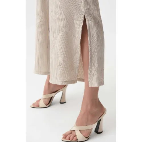 Lightweight and fluid, these pleated satin culotte pants feature an encased elastic waistband for comfort and side slits that add subtle movement to the wide leg silhouette.