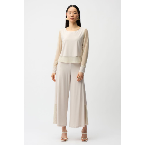 Joseph Ribkoff Silky Knit Crewneck Top With Mesh Sleeves and Layered Lining