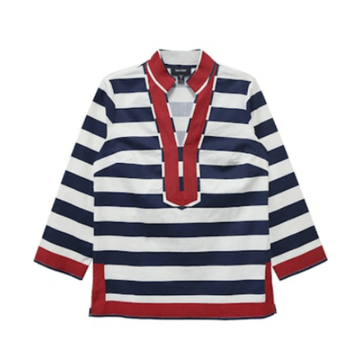 Inspired by classic coastal style, the Karen Kane Striped St. Tropez Tunic offers effortless elegance with a relaxed, polished feel. Featuring bold horizontal stripes with contrasting trim at the neckline, cuffs, and hem, this tunic delivers a fresh pop of color and timeless appeal. The split neckline and three-quarter sleeves create a flattering, easy silhouette, while the longer tunic length provides versatile coverage. Perfect with crisp white pants or denim, this piece transitions seamlessly from casual days to resort-ready evenings.